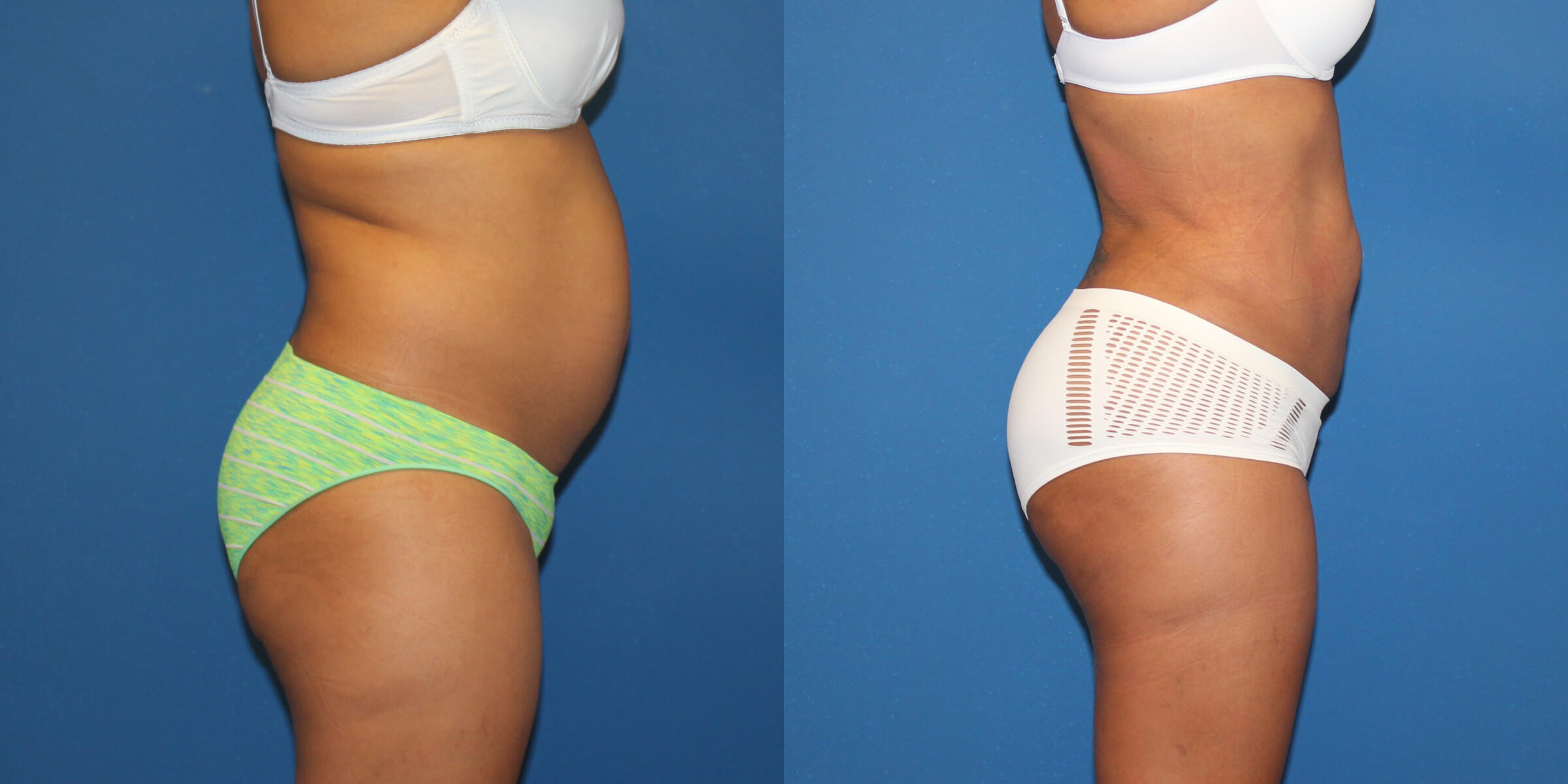 This patient had lipo360 and a BBL to remove the excess stubborn fat from her belly, love handles, back, and bra line. The fat was transferred to her buttocks and hips to enhance her contours. At 3 months, she loves her new curves and has enjoyed getting a new wardrobe.
